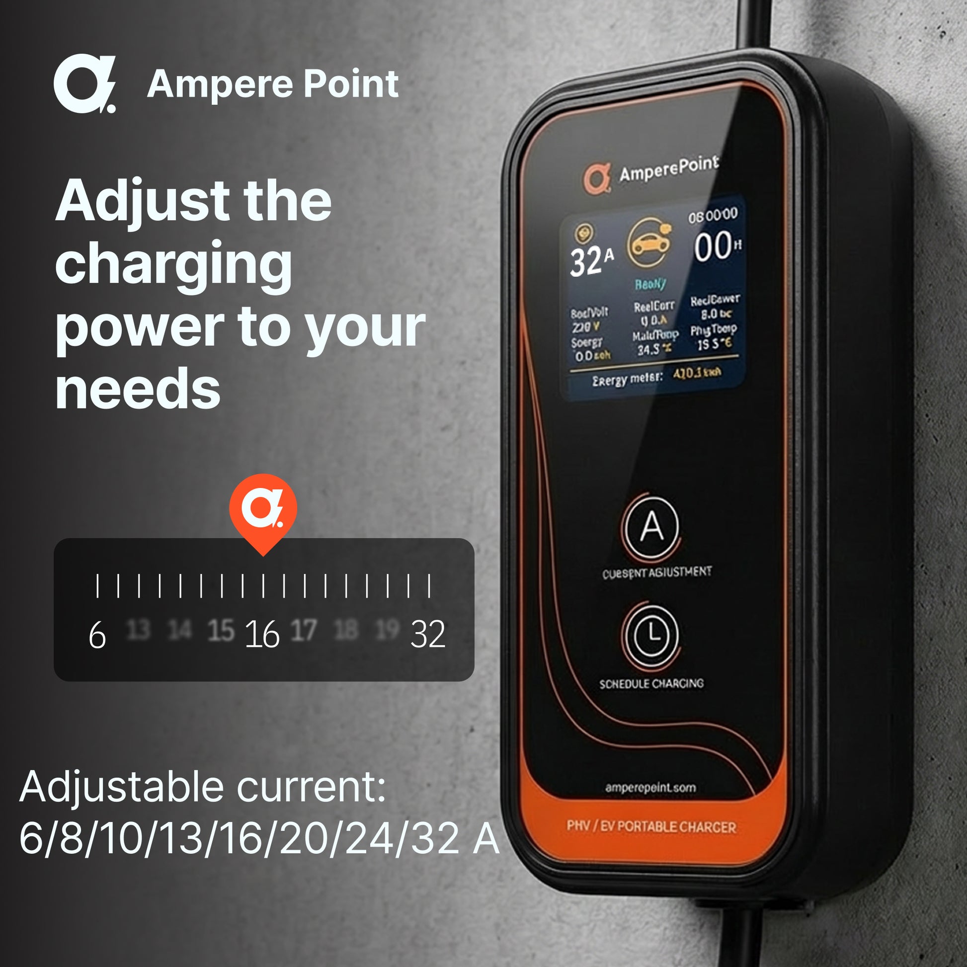 Ampere Point EV přenosná nabíječka 32A, 7,2 kW Typ 2