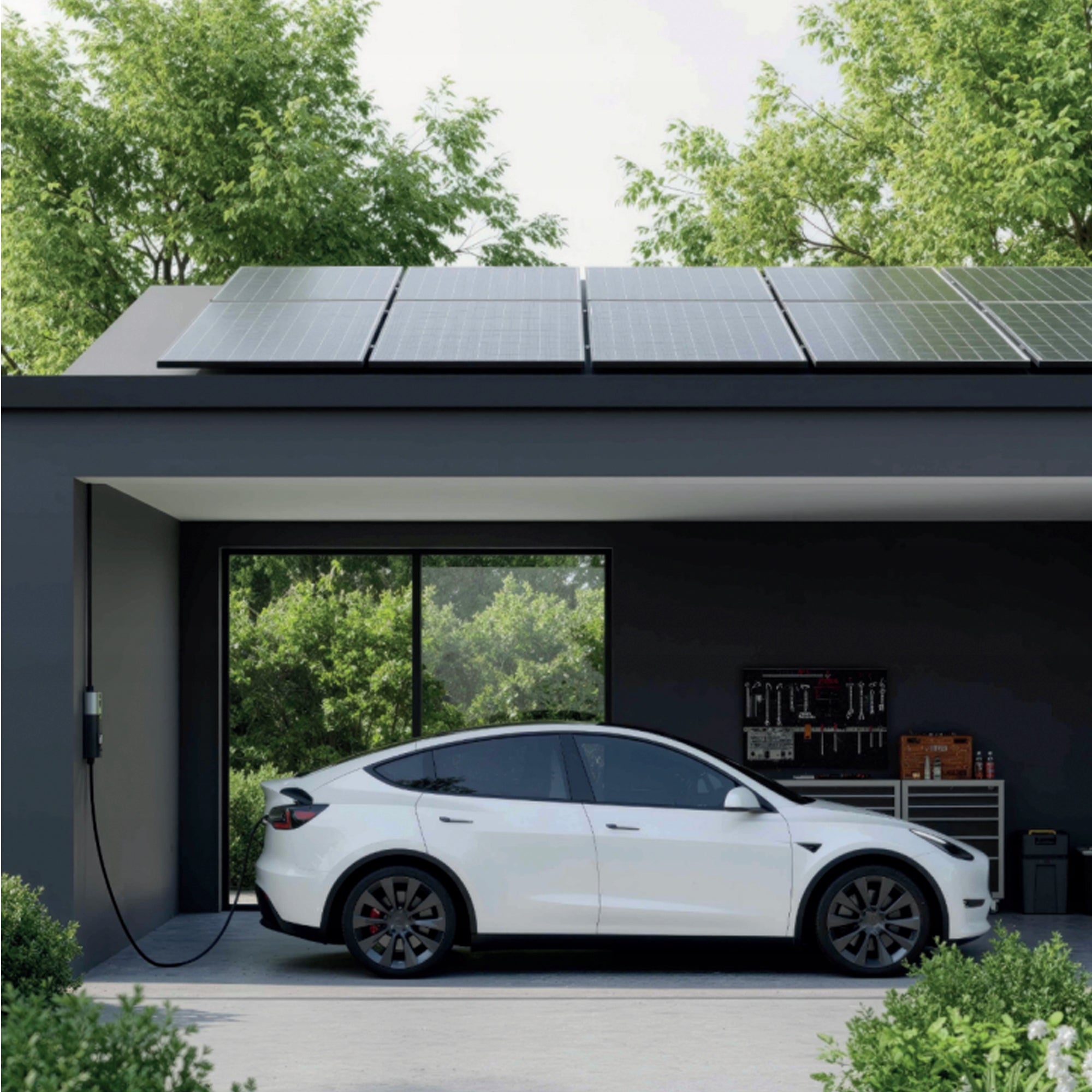 Toto řešení nejen šetří místo, ale také pomáhá udržet vaši garáž, příjezdovou cestu nebo pracovní prostor čistý a uspořádaný. Vaše nabíječka je vždy po ruce a připravená k použití, zatímco kabely zůstávají mimo zem – čisté, bezpečné a bez zamotání.